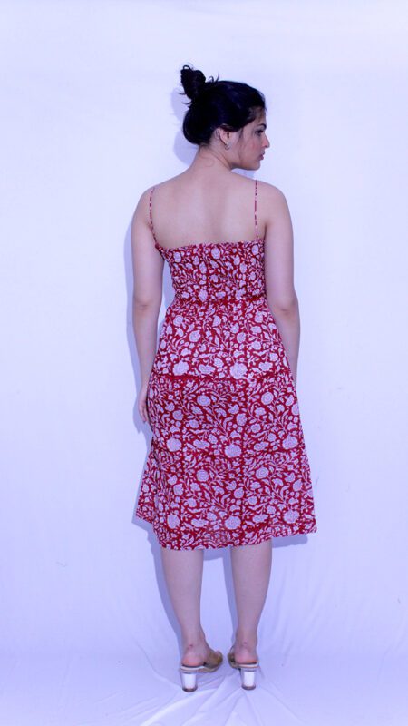 Graceful and bold, the Albeli Dress in rich red features tie-up straps and a smocked back for a flattering, comfortable fit. Handblock printed on soft cotton, it’s made to flow effortlessly with you.