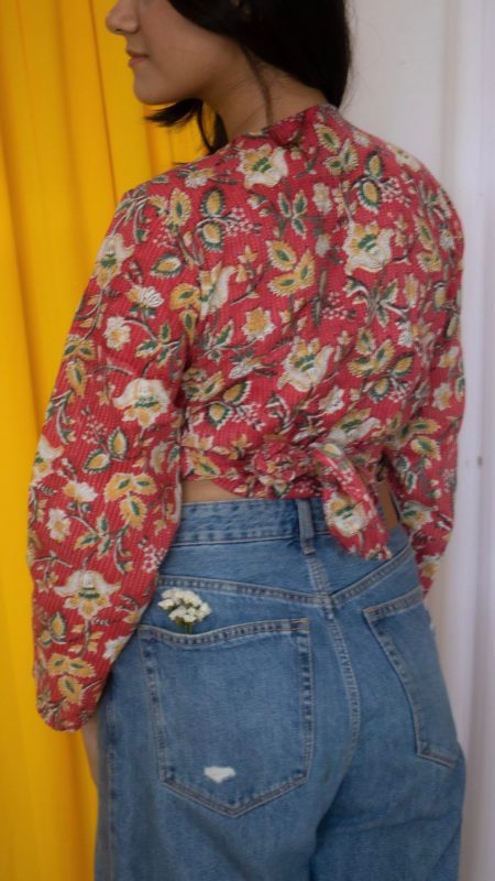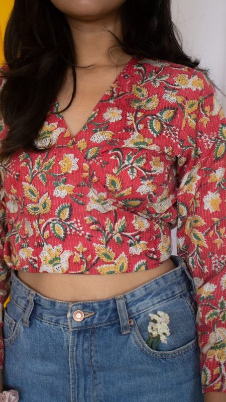 This stunning RED floral wrap top features a flattering v-neckline and elbow length sleeves. The lightweight fabric makes it perfect for warm summer days, while the wrap design ensures a comfortable and adjustable fit. HOW TO WEAR A WRAP TOP?