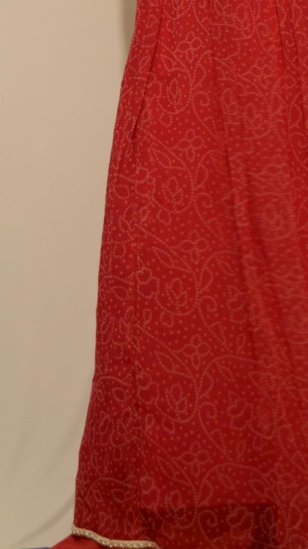 Disclaimer: The antique bandhani pattern and mirror work may result in minor fabric variations that enhance its unique allure. Slight color variations may occur due to light, photography, and other factors.