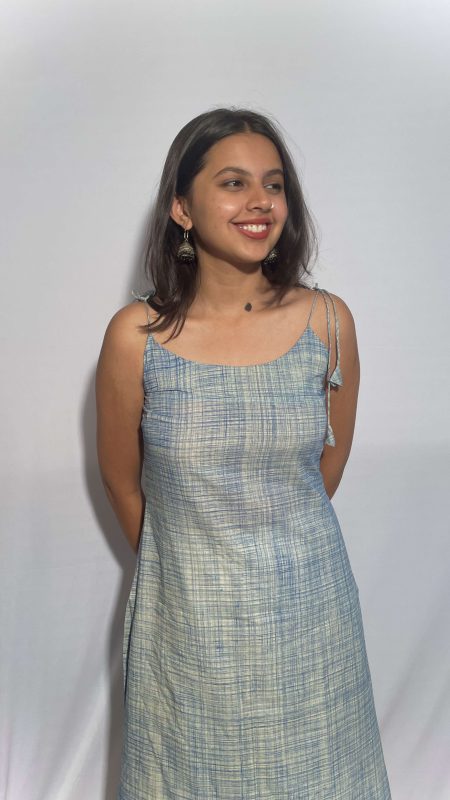 The “Tara Kurti” is an exquisite ensemble that harmonizes elegance and artistry. With its beautiful blue handblock prints and chic strap design, it exudes grace and style. Embrace the allure and charisma of “Tara Kurti” to make a stunning statement at any occasion.